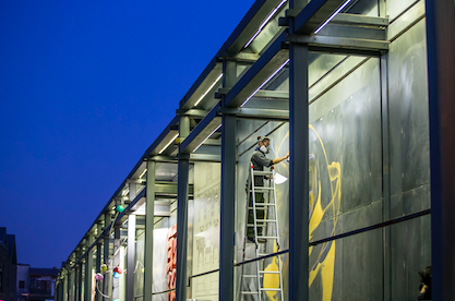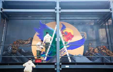 “北京坊·巴黎嘻哈文化潮流节多彩之旅”的举办地北京坊位于正阳门外,中轴线西,与天安门广场相近。而此次活动的重头戏,便是来自世界各地的涂鸦艺术家根据现场的建筑风格和周边环境,实地作画。来自法国的Da Cruz 和NKDM、西班牙的Bruno BIG、智利的Francisco、中国武汉的Ray与广州的M53和CER七位涂鸦艺术家在北京坊露天美术馆作画,将建筑体、地面和长达300米露天展板变成了挥洒灵感的空间。