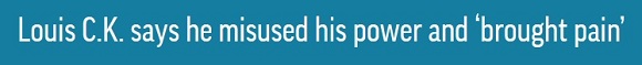 Louis C.K.在一份声明中称,《纽约时报》周四所报道的五名女性对他的性骚扰指控是事实,他对数个项目的演职人员、工作人员以及家人孩子、朋友等表示道歉。他在声明最后称,他将离开公众视线,“用很长一段时间去倾听”。