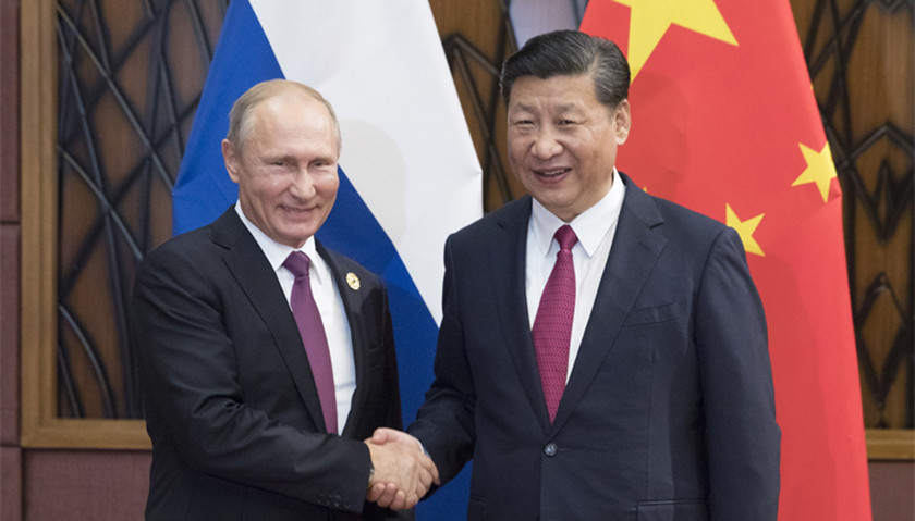 习近平向普京介绍了中共十九大有关情况,强调中国外交的目标,就是要推动建设相互尊重、公平正义、合作共赢的新型国际关系,构建人类命运共同体。