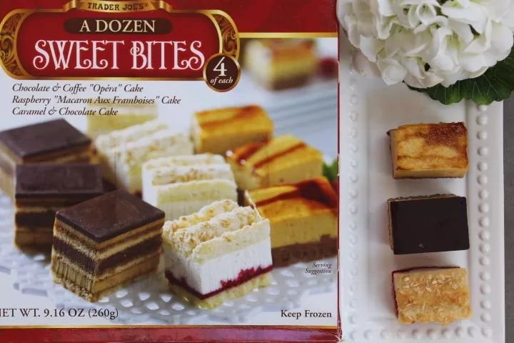 骨灰级吃货网友:里头包含三种不甜腻的精致小甜点各四块,分别是:欧培拉opera cake, 覆盆子蛋糕raspberry cake, 焦糖巧克力蛋糕caramel chocolate cake。招待亲朋好友是不错的选择。