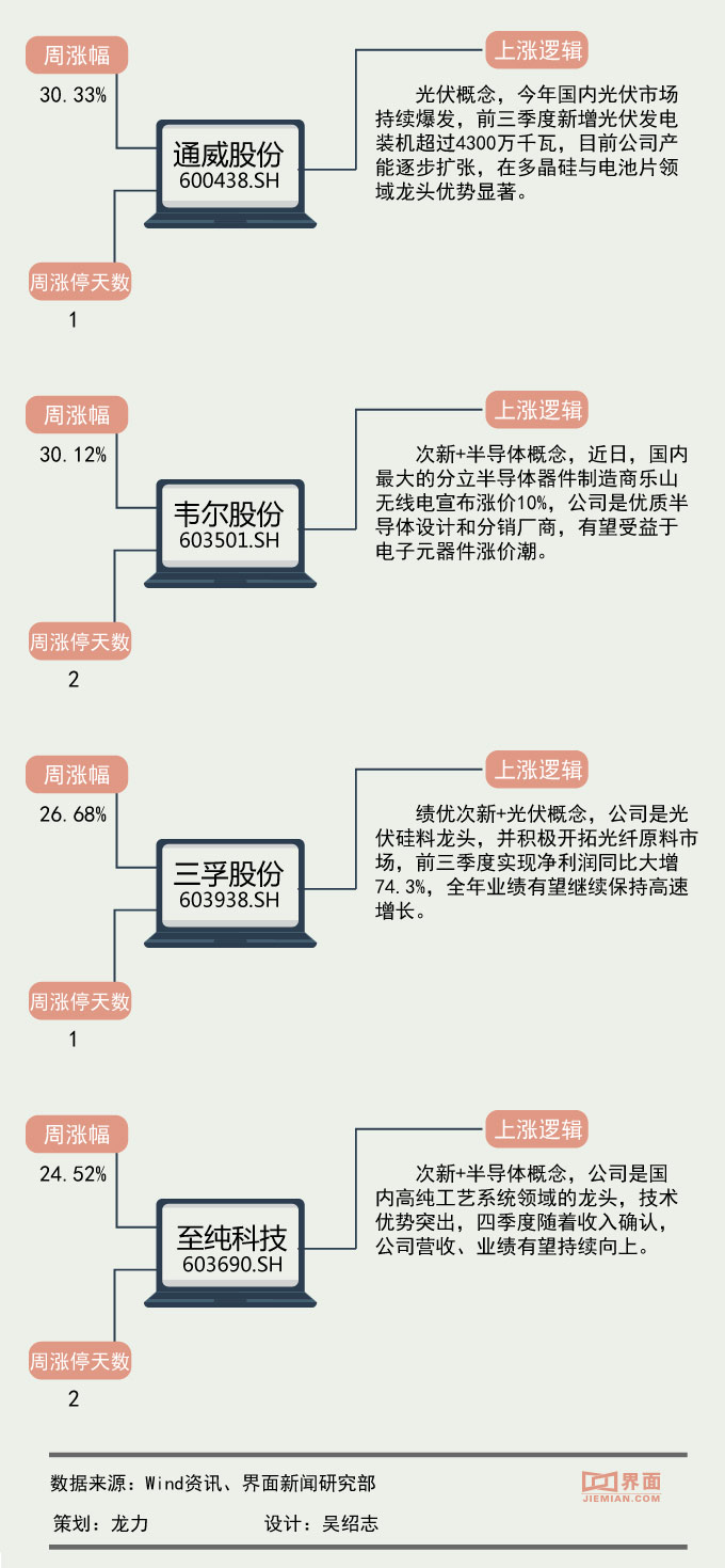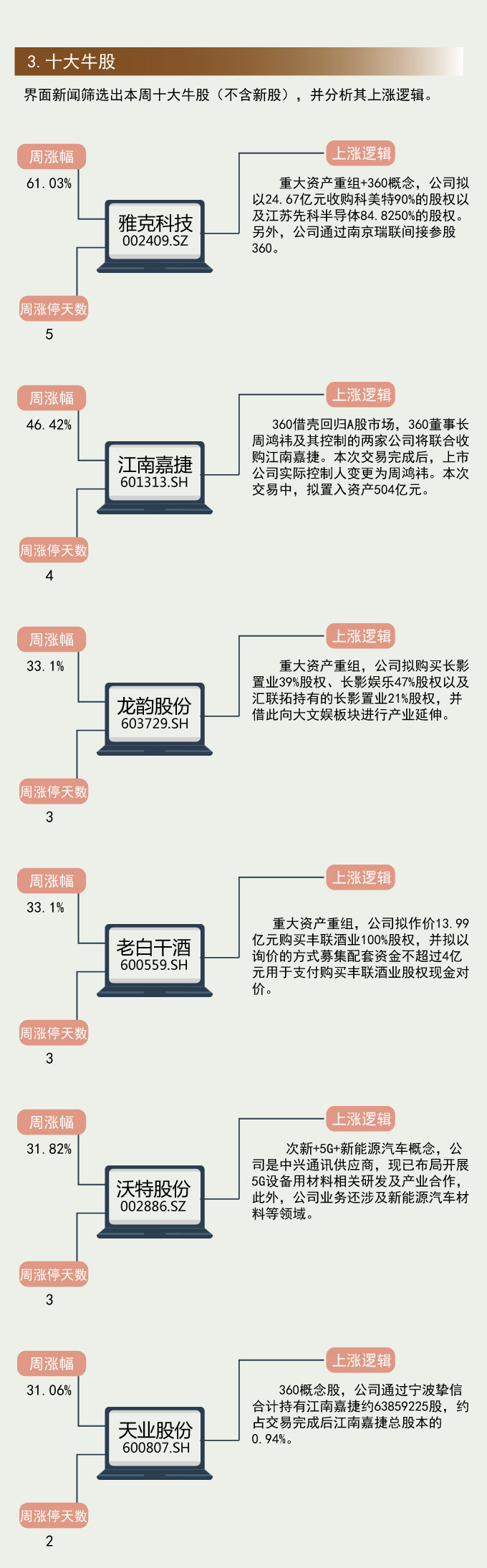 界面新闻筛选出本周十大牛股,并分析其上涨逻辑。