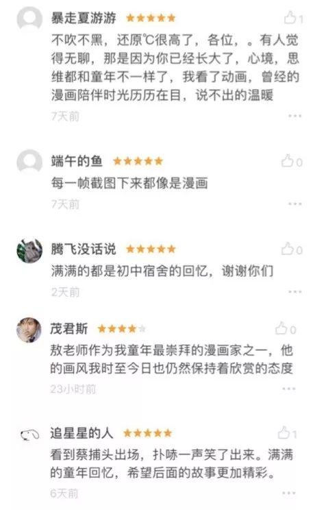 “每一帧截图下来都像是漫画”“不吹不黑,还原度很高了。有人觉得无聊,那是因为你已经长大了,心境、思维都和童年不一样了。我看了动画,曾经漫画陪伴的时光历历在目,说不出的温暖”“看到蔡捕头出场,扑哧一声笑了出来。满满的童年回忆,希望后面的故事更加精彩”豆瓣上网友如此评价《乌龙院之活宝传奇》。