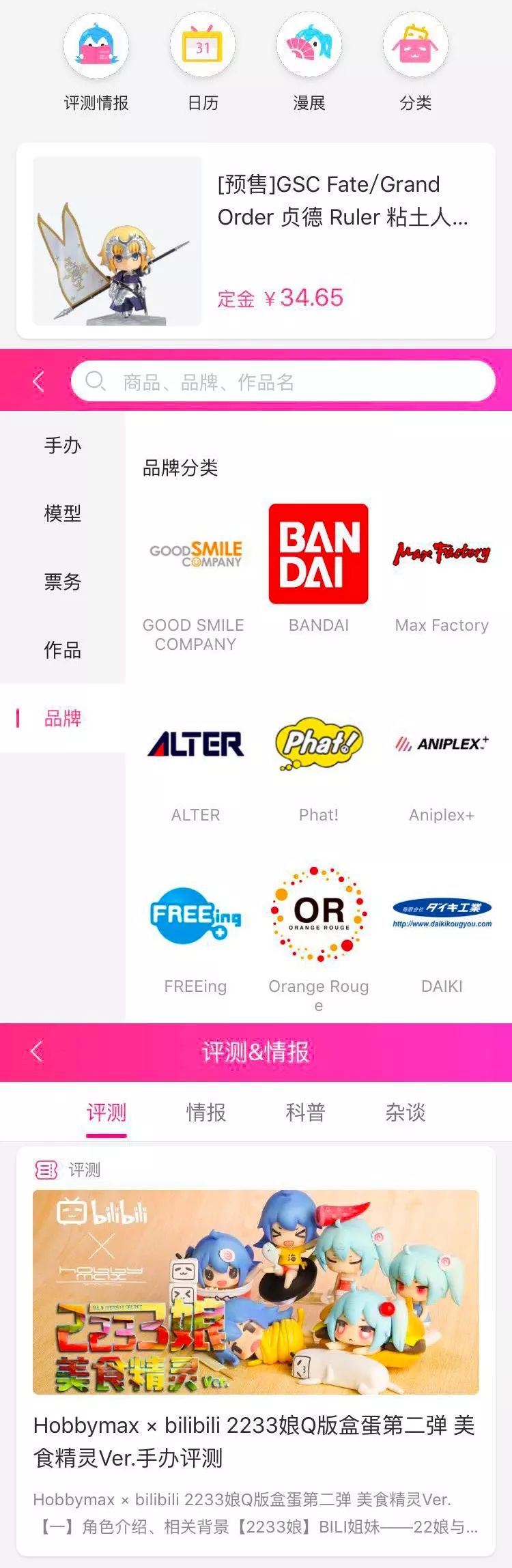 可以看到,B站的会员购已经合作了多个日本及国内的知名品牌,包括万代、Aniplex等日本大厂,购买模式为新款定金+尾款,现货全款支付。而且除了购买,平台上还提供了新品情报、商品专业测评等服务,这些都可以说是消费者的核心需求。