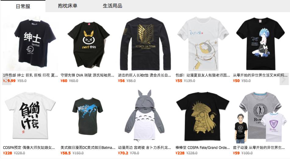 淘宝二次元页面上,日漫IP占比有绝对优势