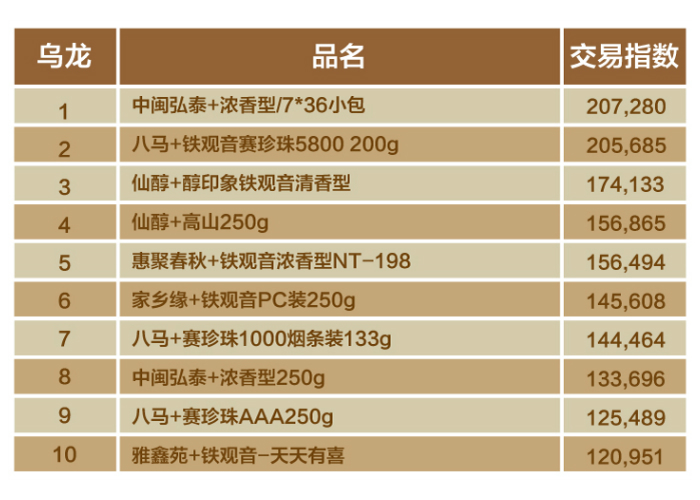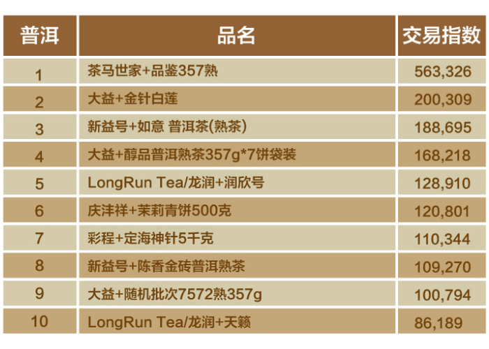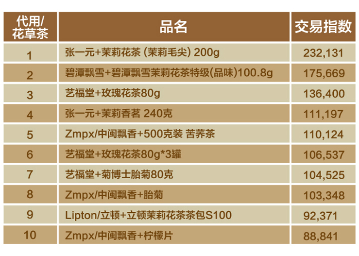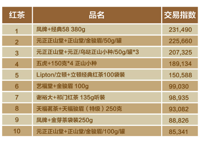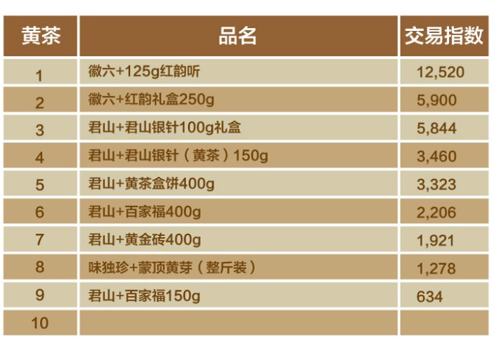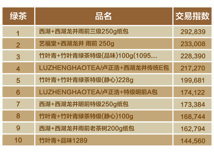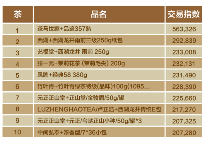 第三,品牌影响力永远能够激发消费者的购买欲,全茶类前十的品牌的知名度基本上都不在话下。