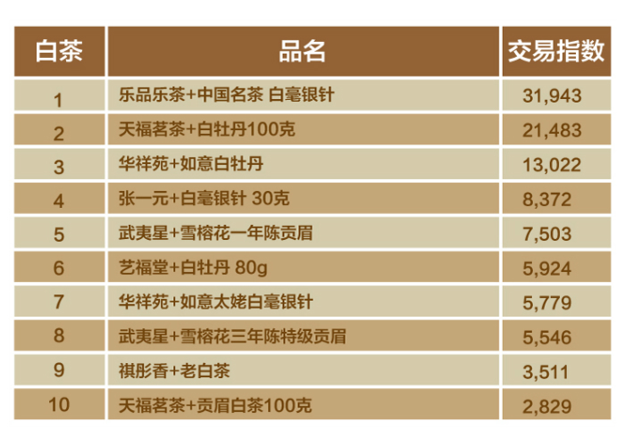 其中,普洱茶依然位列第一,并且还高出4.24%,其他茶类提高率从高到低依次为:白茶提高0.5%,花草茶及再加工茶提高0.36%。