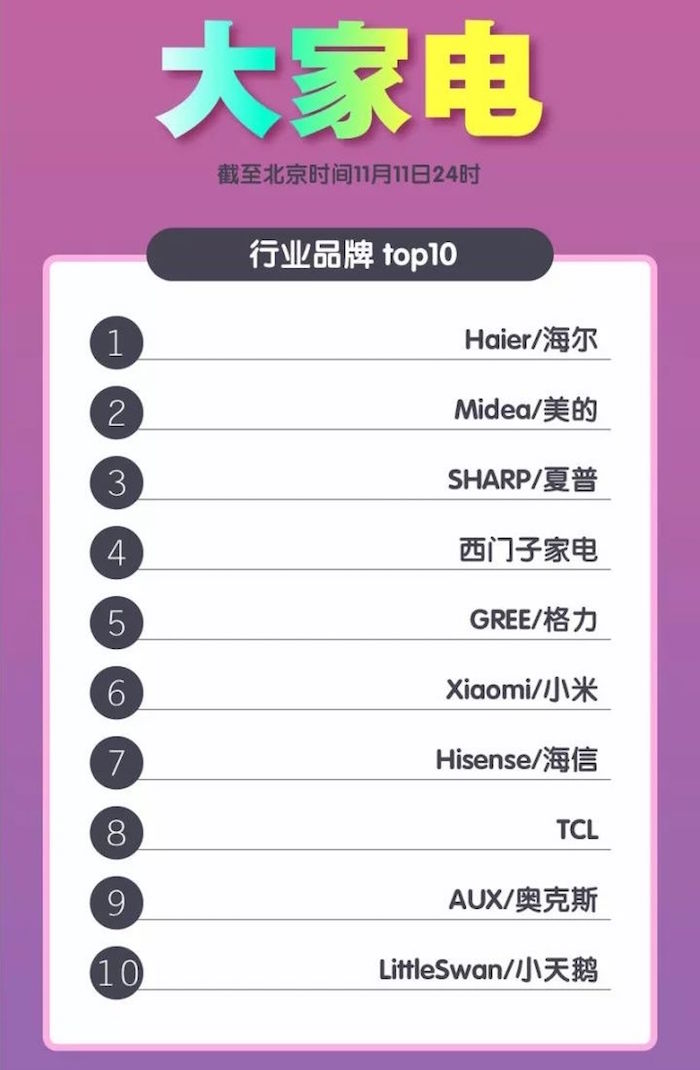 大家电中,海尔连续六年天猫排名第一,今年双十一全天海尔洗衣机销售额为12亿,市场份额占35%居第一;美的双十一全网线上销售额45亿,同比增长70%;此外,大家电也出现了高端消费需求增长的趋势。