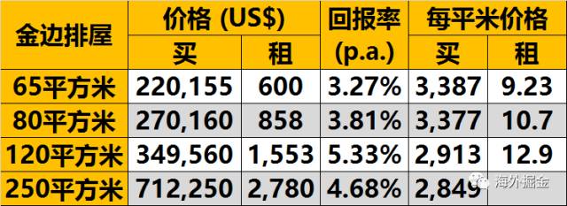 但我们还是要回归现实,以下是金边的普通排屋的租金回报率情况: