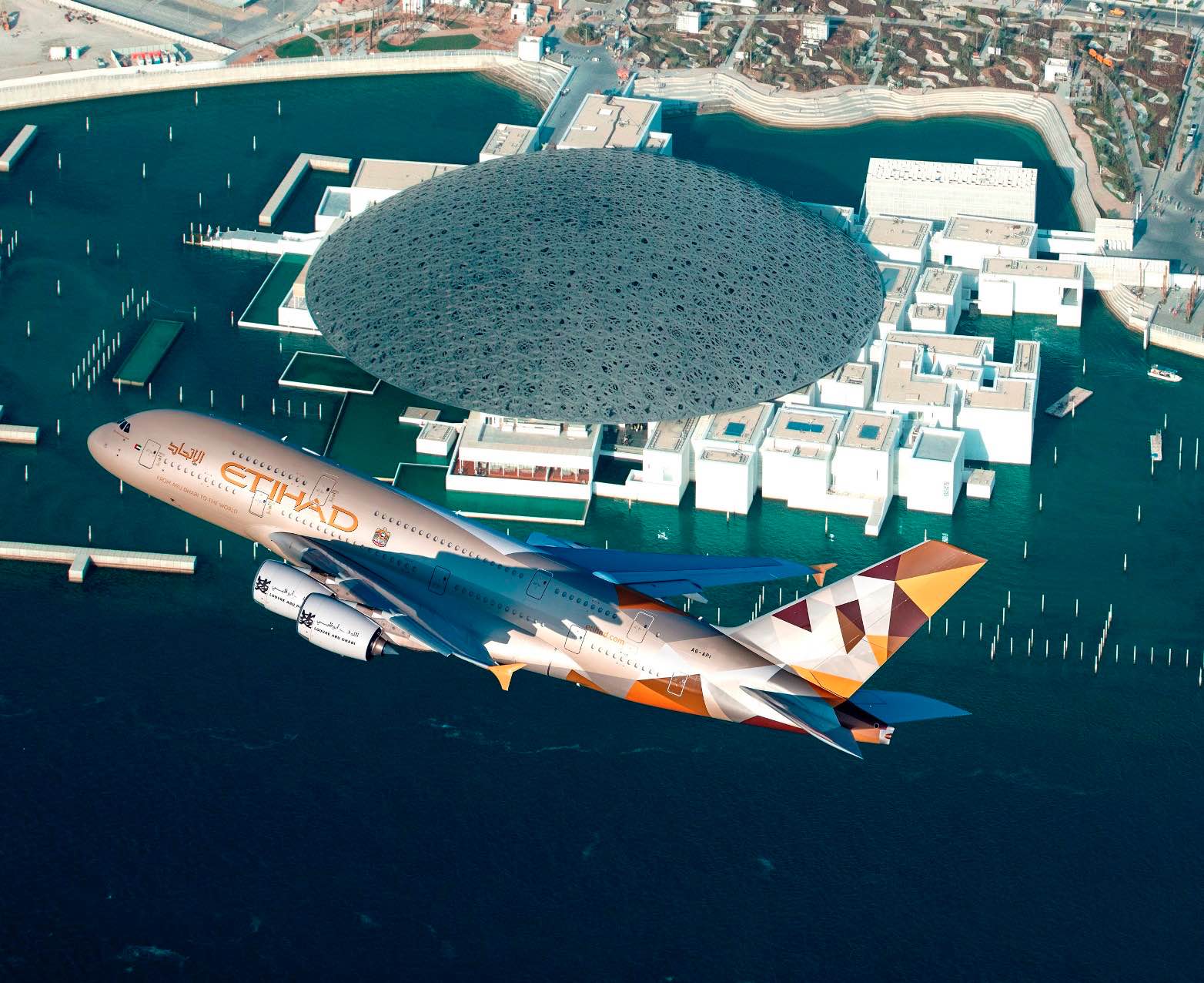 在11月11日,举国狂欢购物节之时,法国著名设计师让•努维尔(Jean Nouvel)设计的阿布扎比卢浮宫终于正式对外开放,阿提哈德航空派出了自己的旗舰机型A380低空飞越此座博物馆,场面一度壮观。
