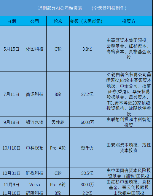 此前,人工智能领域的单轮最高融资纪录由商汤科技保持。今年7月,商汤科技完成4.1亿美元B轮融资,是当时人工智能领域单轮融资最多的公司。