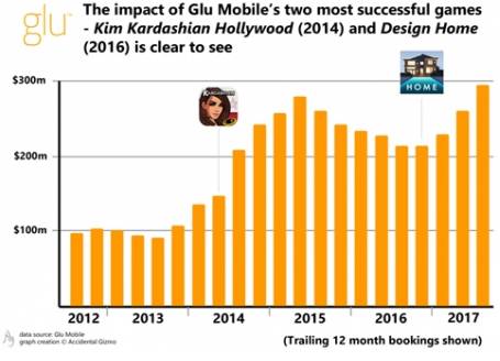 Glu的年收入达到了公司创办至今的一个新高点,并预计将在2018年实现盈利——2014年至今,Glu从未实现单年业绩盈利;而在过去两年里,这家公司甚至没有任何一个季度实现盈利。