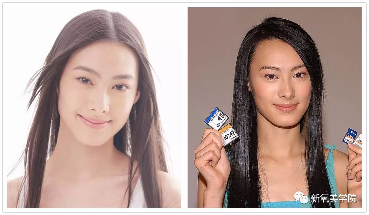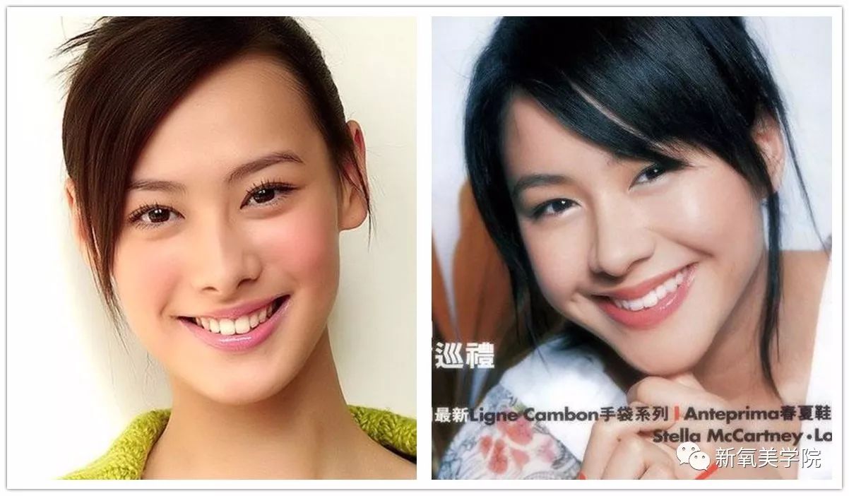 但是不如张柏芝精致。比如从尖圆配比上来说,梁洛施圆润感的地方少,从五官布局和宽窄来说,梁洛施明显是长脸,这样如果后期没有婴儿肥的加持,很容易显成熟。