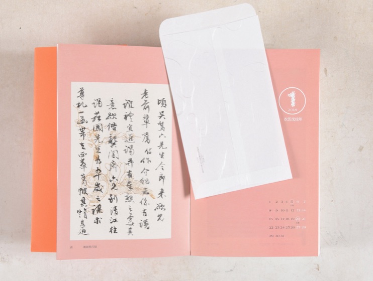 “主要内容为各种木版水印的信笺。书中所夹的小信封上印有简洁的图案,跟书页上的信笺图案形成对应,护封里还藏有一张木版水印的真信笺,趣味性很强,并更加突出了笺谱的特点。”