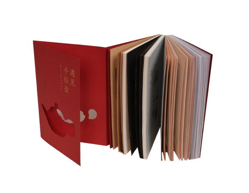 “封面采用模切工艺,由外到内多层次图形变化,最后引申到壶的核心——茶。不同纸张平实地表达了茶的历史,同时也是壶的历史沿革;并为此配了文字,能让读者静下心来;每种壶用小拉页照片凸显,体现出茶壶内敛的气质。”