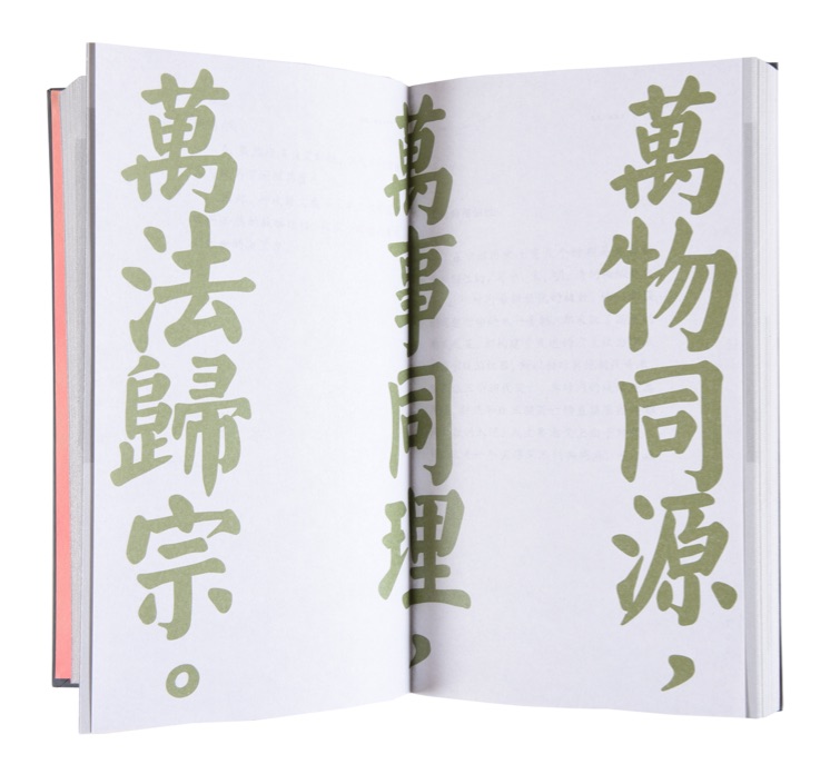 “总体呈灰色调,前后环衬却采用亮眼的荧光红,内文又穿插了很薄的书页,以单面印刷灰绿色的颜体大字,让整本书活了起来。封面字体的设计富有现代感。辑封模切的位置各有不同,黑底与封面遥相呼应。正文选用了较大的字体,使阅读更为舒适。”