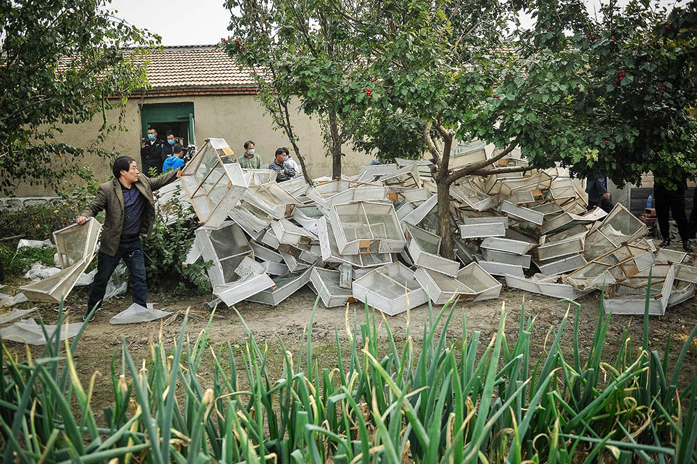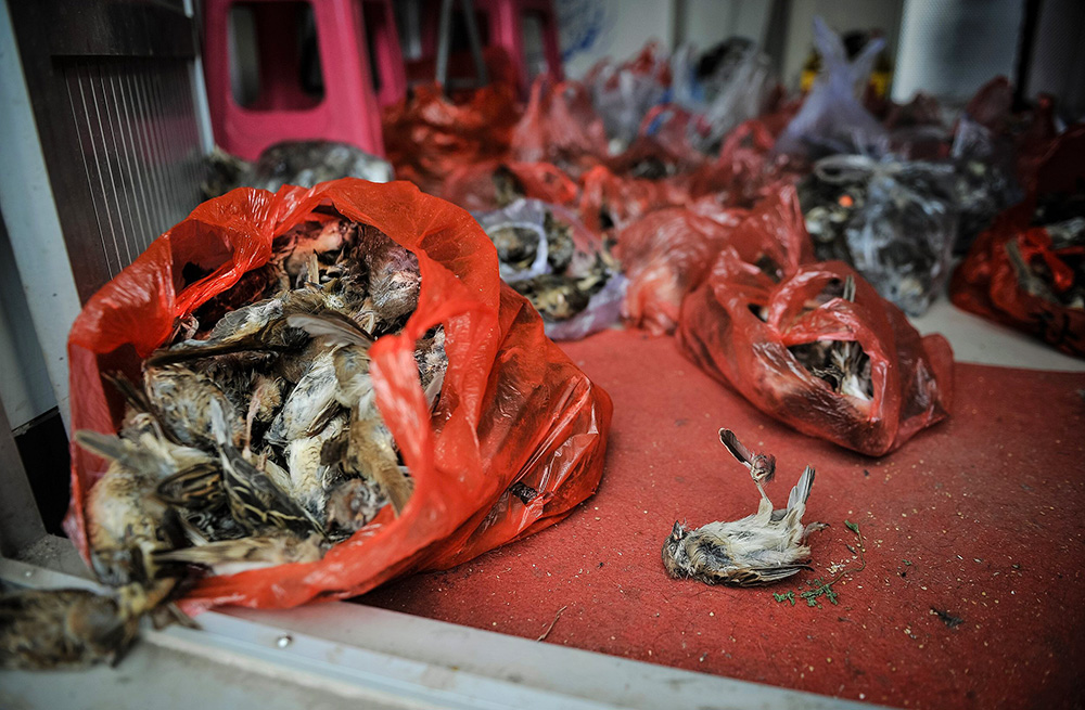 在这个窝点,大部分鸟儿被催肥用于食用,还有一些品相好的鸣禽,则被单独圈养,流入北京、天津等地的鸟市,成为笼中玩物。在一个鸟笼里,一只鸟儿在黎明来临之前死去。