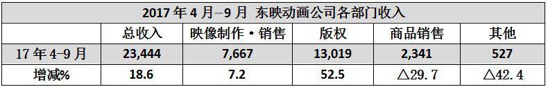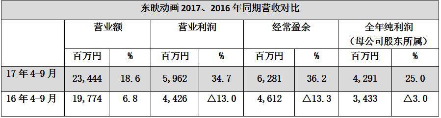 东映动画、东宝凭借旗下强大的老牌IP以及海外市场版权代理,2017年度业绩再创新高。