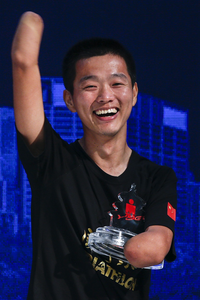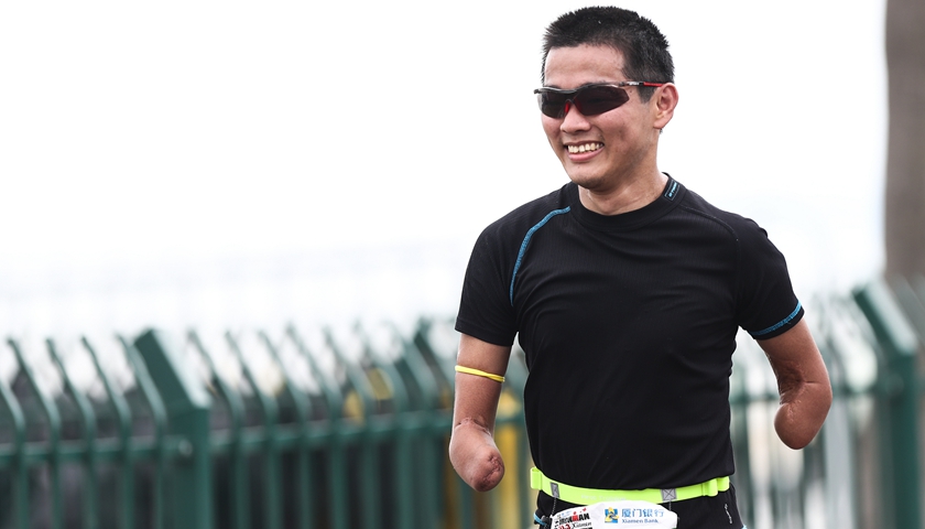 他们之中,来自福建本土的参赛选手叶建凡同样突破极限,作为残疾运动员的他以6小时46分17秒顺利完赛。继曲靖站上一鸣惊人的“折翼飞鱼”王家超之后,叶建凡成为又一位在IRONMAN赛场书写生命神话的中国选手。