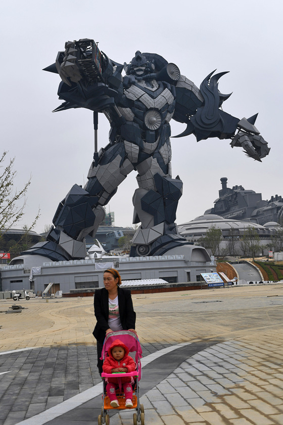 在科幻谷园区中央,耸立着一座巨大的变形金刚。据介绍,这是世界第一大变形金刚,用750吨钢材建造,高近60米,耗资一亿多,是创吉尼斯世界纪录的第一高变形金刚机器人。