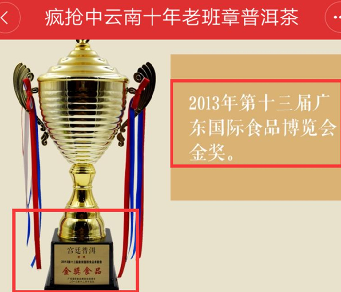 这样处理的原因只有一个:这个奖可能是某个比赛上颁给了一个宫廷级别的熟普产品,但并不是店家所卖的熟普产品。