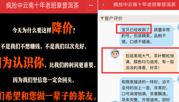 “不是我们不想赚钱,不是我们以次充好……希望和您做一辈子的茶友”——多好的宣言,多么诚挚的感情,要不是知道这个假茶太假都快被感动了。