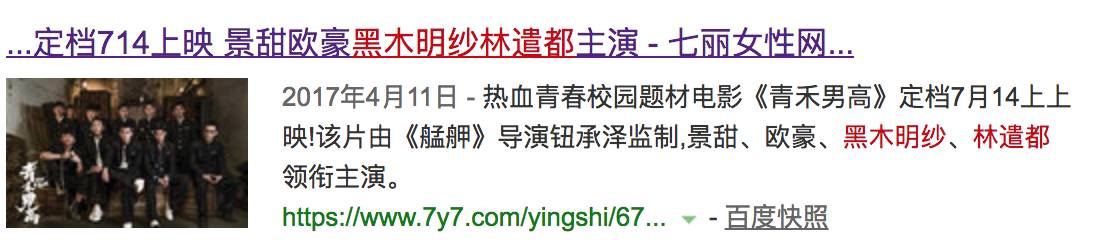 黑木明纱和林遣都则参演了阿里影业等联合出品的《青禾男高》。该片由景甜、欧豪主演,林遣都饰演男主的对手,黑木明纱饰演林遣都的姐姐。但通稿还是将两位日本演员算在了主演阵容,溜粉能力一百分。