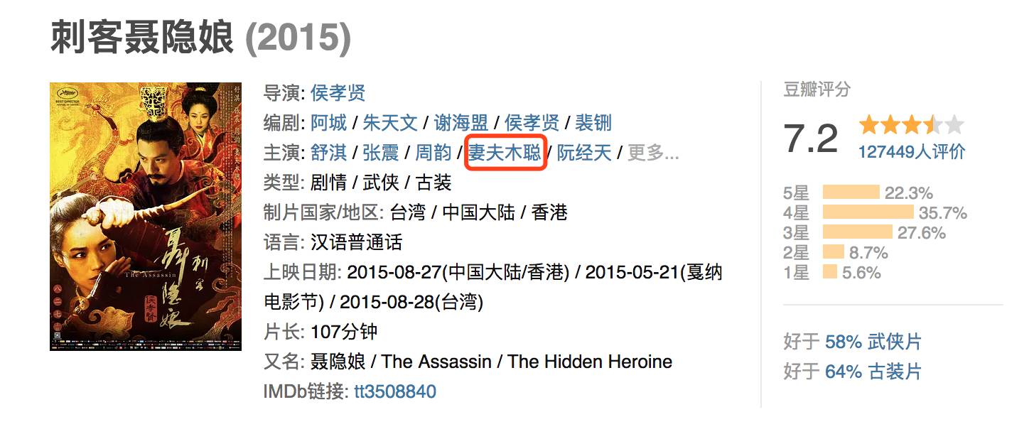 在《刺客聂隐娘》中,妻夫木聪虽然在番位上靠前,但实际戏份不多。其他来华日本演员,也大多出演配角,参演《青禾男高》的林遣直言:“我在电影里面没有跟景甜有对戏的部分。”