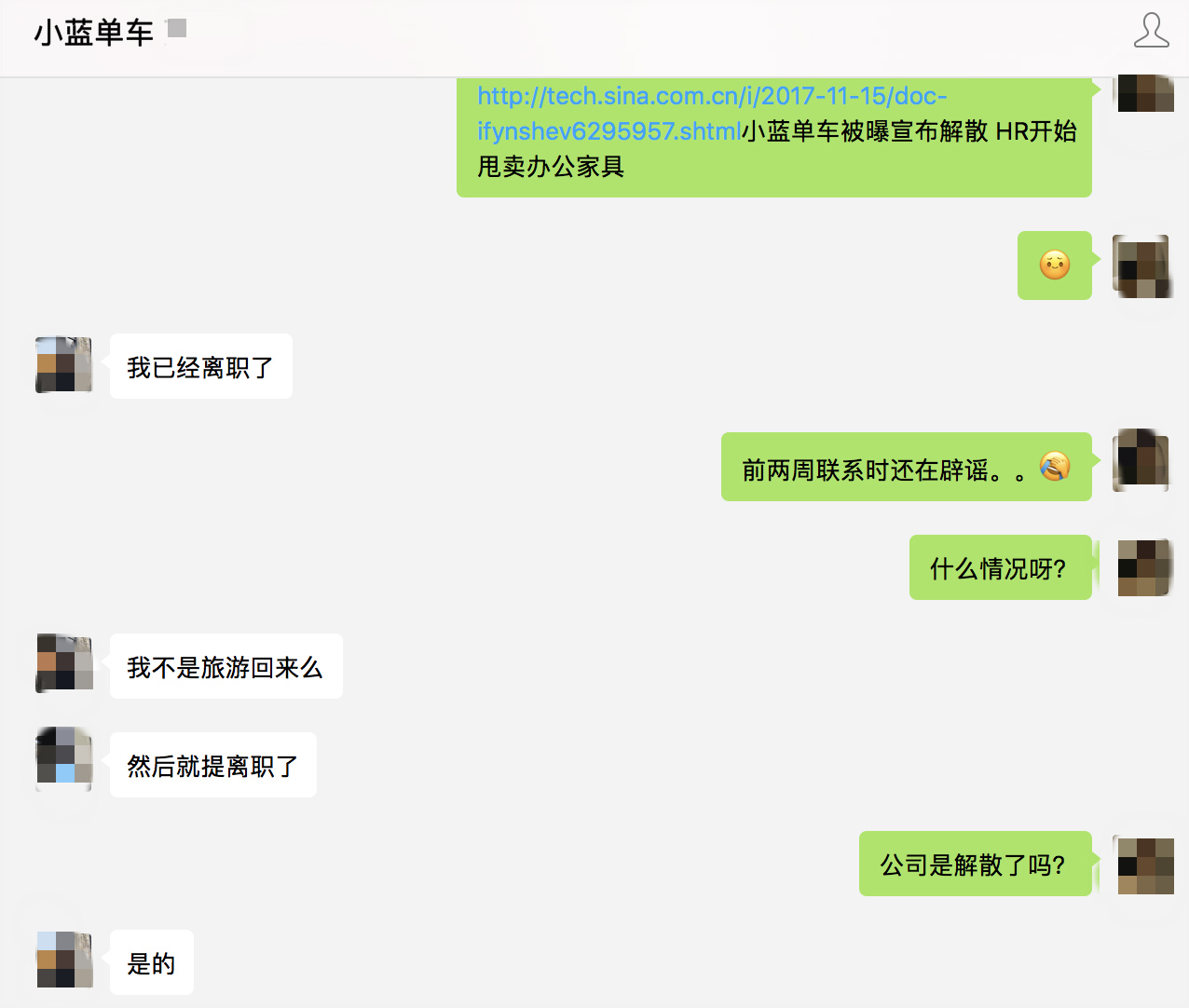 另外,小蓝员工透露,小蓝单车昨天就已经解散了大部分员工,可能会留一小部分产品技术,转到别的公司。此外,李刚的另一家公司,与小蓝单车一起办公的野兽骑行,除了高管外,其余员工全部遣散(劝退)。