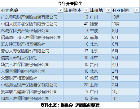 截至11月15日,今年保监会已经批复13家保险公司开业。
