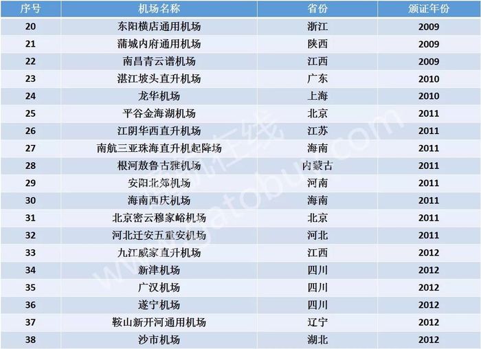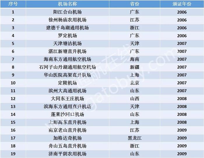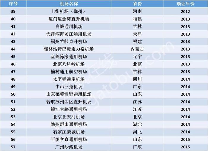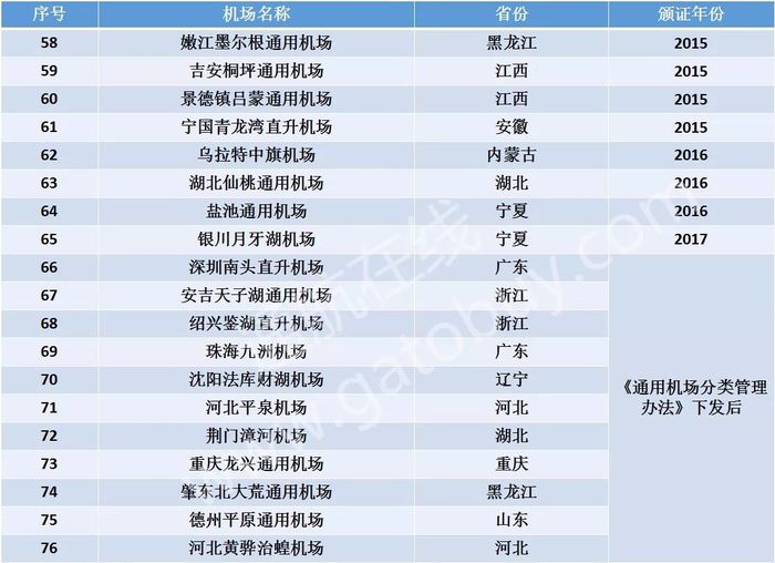76个颁证通用机场汇总表