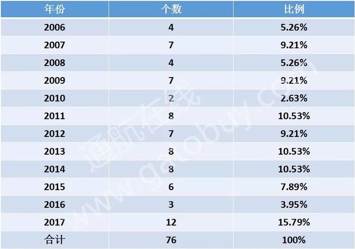 通用机场颁证年份比例表