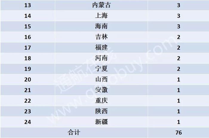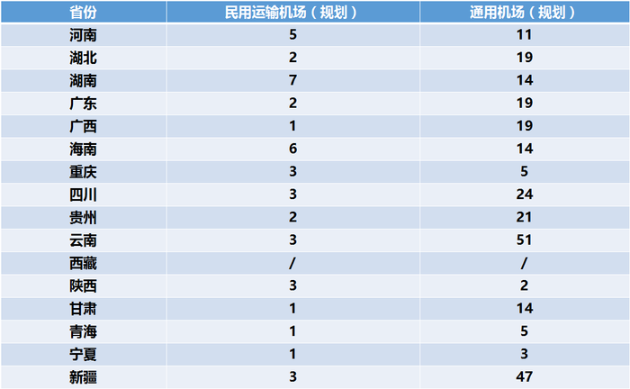 各省市已颁证通航机场数量表