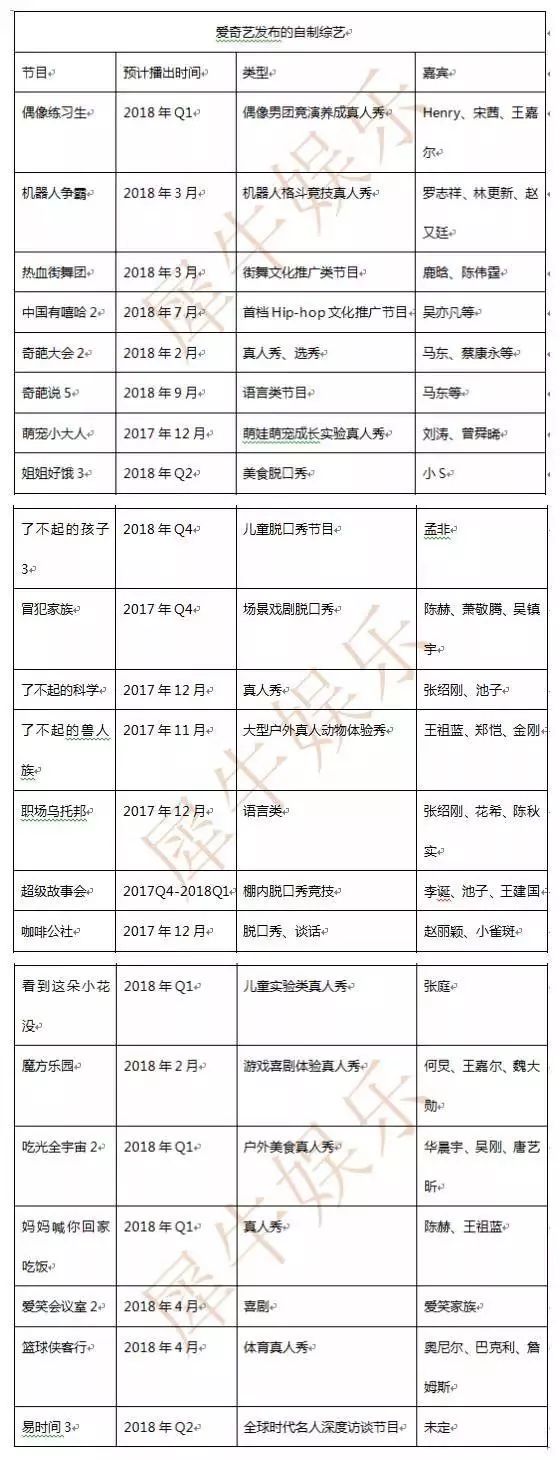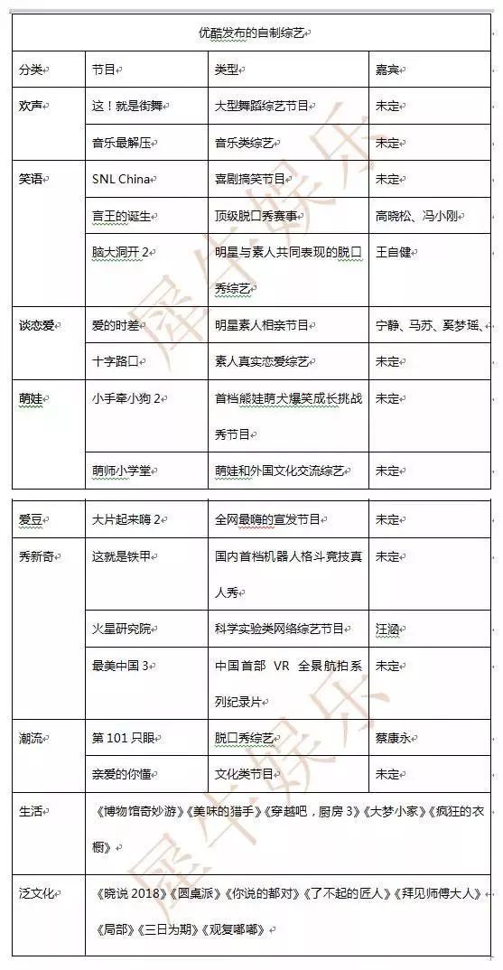 腾讯视频2018年的重点内容计划单上,其优势在于自制综艺数量近30部。