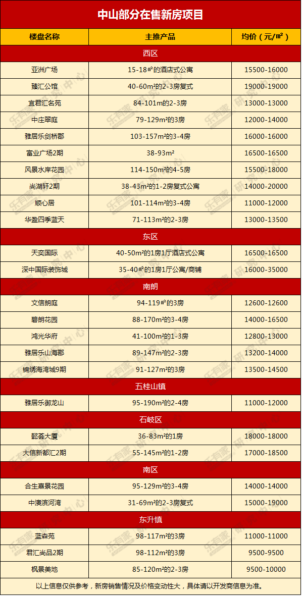 就中山在售的新盘而言,配套及户型较好的楼盘多破万元,户型涵盖多面积区域。