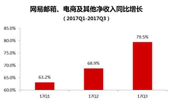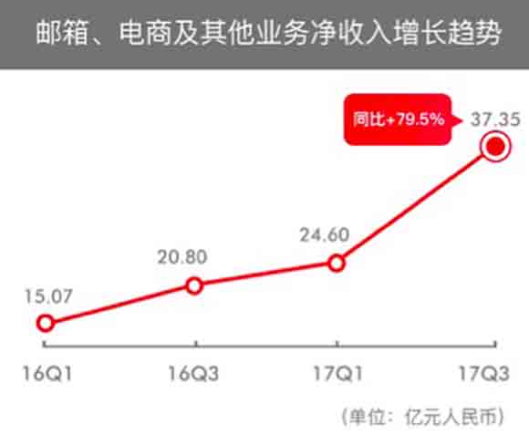邮箱及电商业务是网易今年发展最快的一部分业务。Q3网易邮箱、电商及其他业务的净收入达到37.35亿元,同比增长达79.5%。