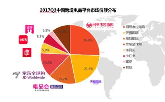 据艾媒咨询公布的《2017年第三季度跨境电商市场的最新研究》显示:网易考拉海购以25.6%的占比,继续占据2017年Q3跨境电商平台市场份额分布首位。