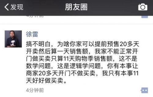 于是京东徐雷在朋友圈回应:
