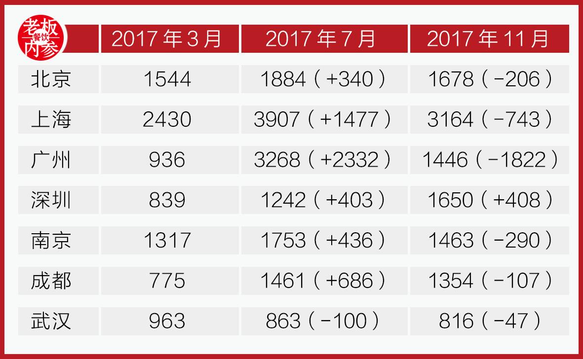 ▲ 今年3、7、11月份主要城市龙虾馆数量 数据来源:大众点评