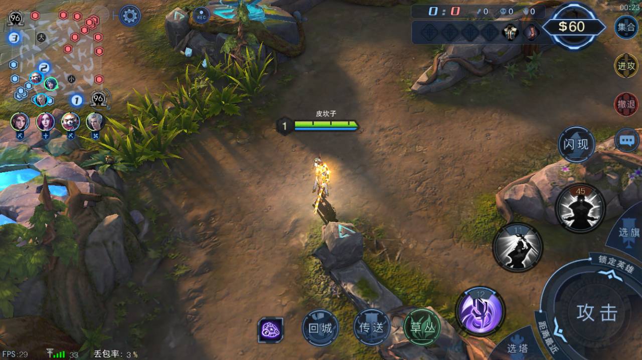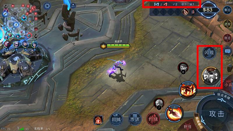 除了英雄机制不平衡之外,游戏内的操作界面也发生了很大的变化。《自由之战2》的对局界面中没有独立出来战绩按键,玩家需要点击屏幕上方的个人战绩才能进行相应的查询;而且游戏内的小地图无法放大查看,也不能在小地图上进行信号标记;通常MOBA手游的闪现技能都在英雄第一个技能旁边,但是《自由之战2》的闪现移到了英雄大招的上方,玩家在激烈的团战中很容易出现把大招错按成闪现的失误。