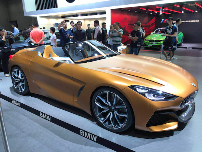 BMW Z4概念车采用了经典敞篷跑车的设计理念,如长轴距、低腰线、修长的侧面轮廓配合紧凑的尾部。新的设计比例带来更加灵动的车身姿态,动感的轮廓结合极富吸引力的曲线造型,配以明暗交错的动感交互,充分彰显了车辆现代、感性的风范,每个角度都散发着无法抗拒的力量感和运动激情。车辆采用独立设计的平滑弧形车顶从座舱一直向后延伸到低矮的尾部,优雅地集成了敞篷防滚架的功能,为车侧带来动感低趴的比例和造型效果。