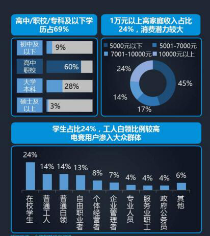 由上图可以看出,中国电竞的群众基础是最好的一代,在校大学生成为电竞用户的主要群体,工人白领占据的比例也相对较高,整体呈现年轻化的趋势。共青团中央赛后发文称赞:“这届观众为获胜者鼓掌,也为不幸失利者送去鼓励!这场LOL比赛中国队没能创造历史,但中国观众的表现惊艳了世界。”