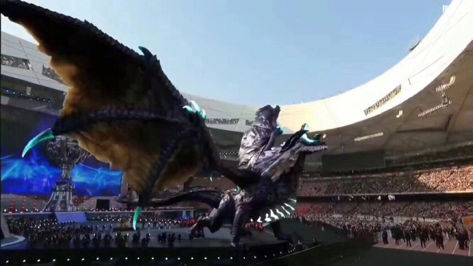 咆哮的远古巨龙从鸟巢上方盘旋而下,屹立在场中央。在全新的视觉冲击下,一些现场观众表示:“那一刻仿佛置身于召唤师峡谷之中,燃爆了。”网友纷纷讨论鸟巢中的巨龙是什么黑科技。据悉这是制作团队采用AR(Augmented Reality)技术实现的。AR就是在比赛直播时将英雄信息叠加到现实画面中,使两者共同融入一个真实的自然场景。据技术帝分析就是拳头提前将大龙形象制作好,包括现场光效以及大龙走位等等,随后在直播中将大龙叠加到画面中。可见拳头在赛事的观赏性上下足了工夫。
