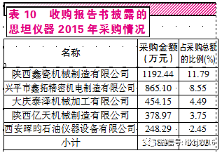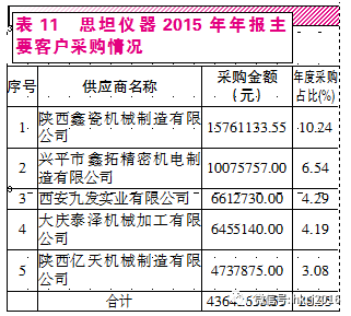 从细节看采购数据同样如此,如针对2015年第一大供应商“陕西鑫瓷机械制造有限公司”,海默科技发布的收购报告书披露的采购额为1192.44万元,而思坦仪器2015年年报则披露为1576.11万元(见表11),两项数据也相差了将近400万元。