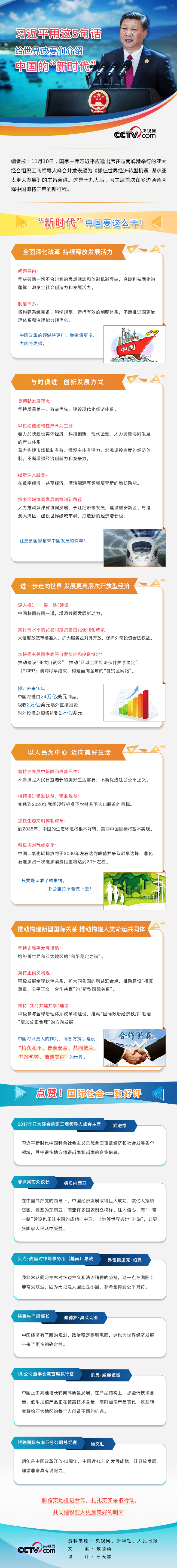 11月10日,国家主席习近平应邀出席在越南岘港举行的亚太经合组织工商领导人峰会并发表题为《抓住世界经济转型机遇 谋求亚太更大发展》的主旨演讲。这是十九大后,习主席首次在多边场合阐释中国即将开启的新征程。