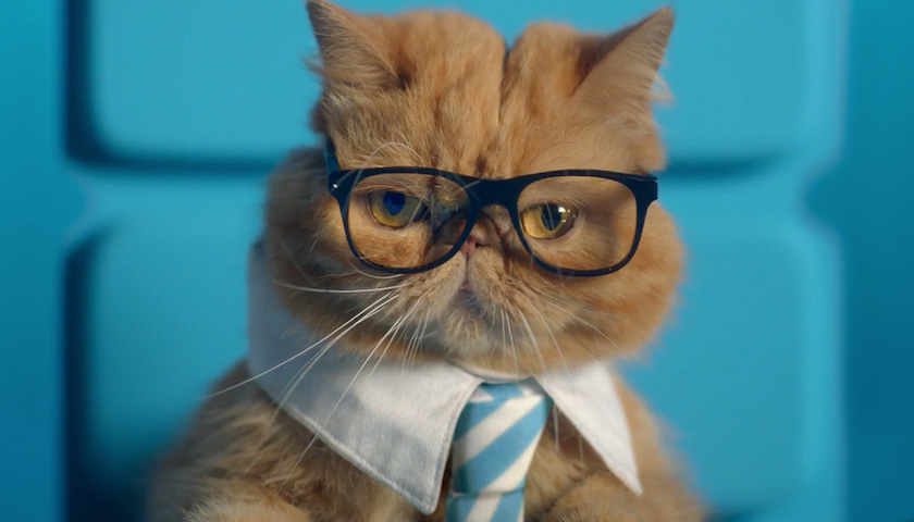 中兴手机也加入了吸猫教。在BBDO为它最新策划的系列广告片中,一直戴着黑框眼镜、系着领带、戴着手表,一幅老板派头的猫咪坐在Tiffany蓝的办公室里,同时看着两台电脑屏幕,分身乏术——此时它需要一部可以同时操作两个屏幕的手机。