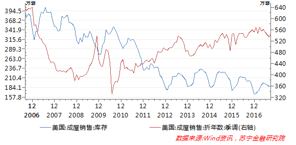 美国住房供应短缺,还表现在成屋库存降至低位,新房供应无法跟上需求的节奏,使得成屋销售长期处于高位水平,成屋过剩库存大量消耗,使得当前美国成屋库存已显著低于危机前的水平(参见下图)。