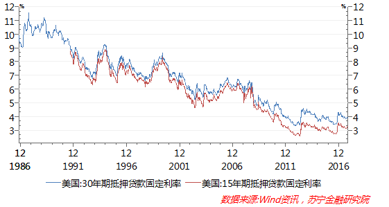 第三,低利率环境助推房价上涨。从历史长周期看,虽然美联储加息以来美国长期抵押贷款利率有所回升,但近年来美国房贷利率仍处于低位。特别是美联储加息、缩表政策取向已确立的大背景下,固定抵押贷款利率的按揭产品设计,将加速购房需求的提前释放。随着工资水平的上行和整体经济环境的改善,较低固定房贷利率对潜在购房者有着足够的吸引力。