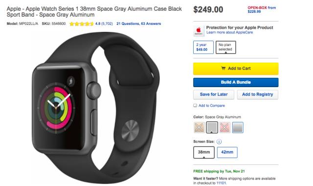 Apple Watch Series 1 运动手表,黑五价199刀起,立省$50起