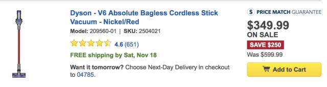 Dyson V6手持 直立式 吸尘器黑五价$349.99,立省$250