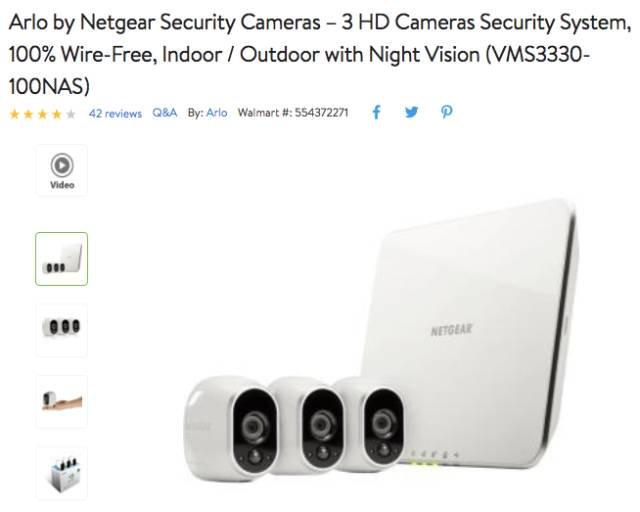 NETGEAR Arlo 家庭安全系统 (3个无线HD摄像头) ,黑五价$199.99,立省$300